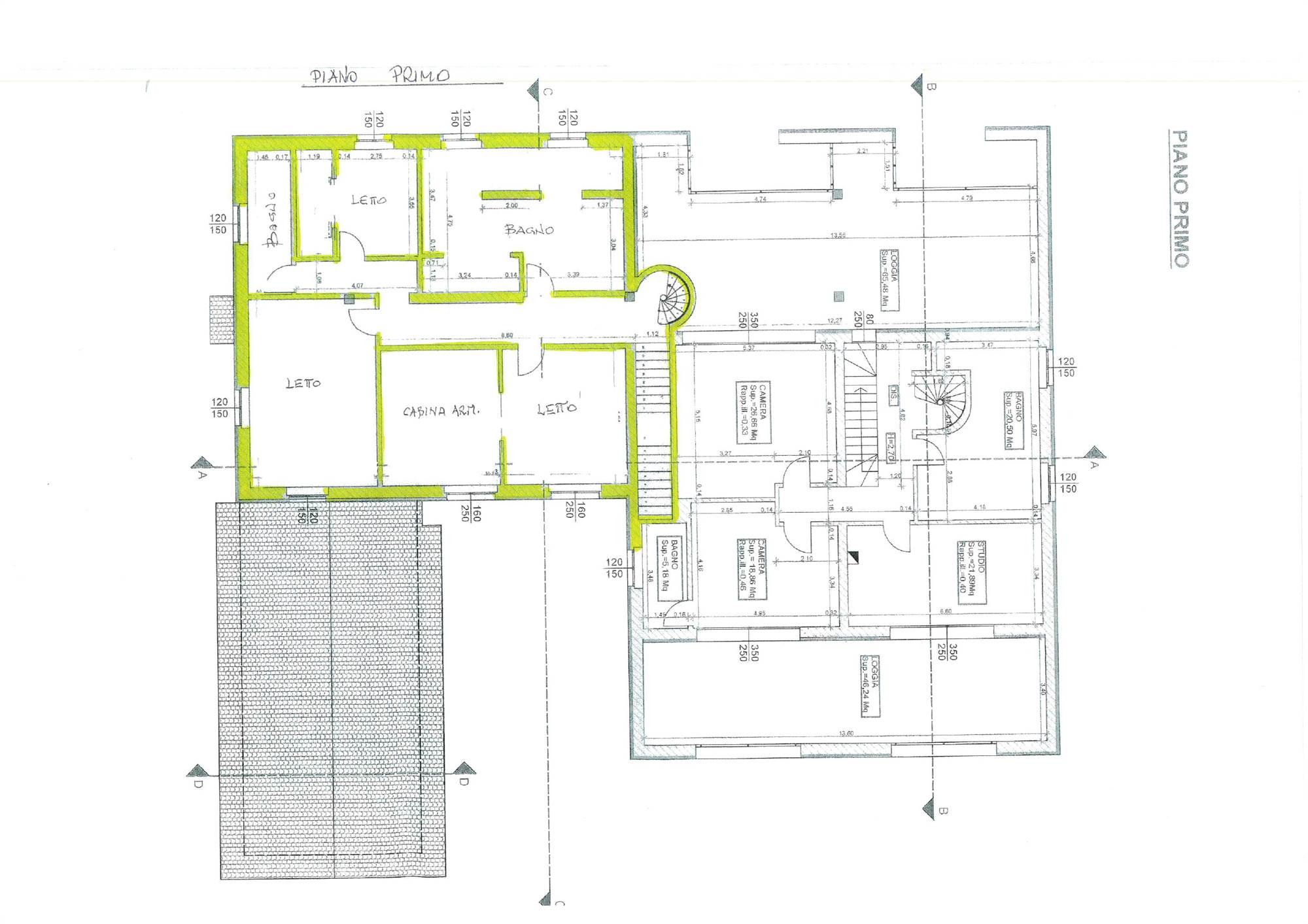 Il piano primo, della superficie di oltre mq. 160 è dedicato alla zona notte e ospita tre spaziose camere matrimoniali, tutte dotate di spogliatoio, un importante bagno padronale di circa 30 mq e un secondo bagno. Al piano mansardato si apre un grande locale open-space di circa 70 mq, completamente finito e dotato di impianti, caratterizzato da ampie vetrate che regalano una suggestiva vista aperta sulla campagna circostante. Completa la villa un ampio locale sottotetto di ulteriori circa 160 mq, attualmente allo stato grezzo e ideale per future personalizzazioni.