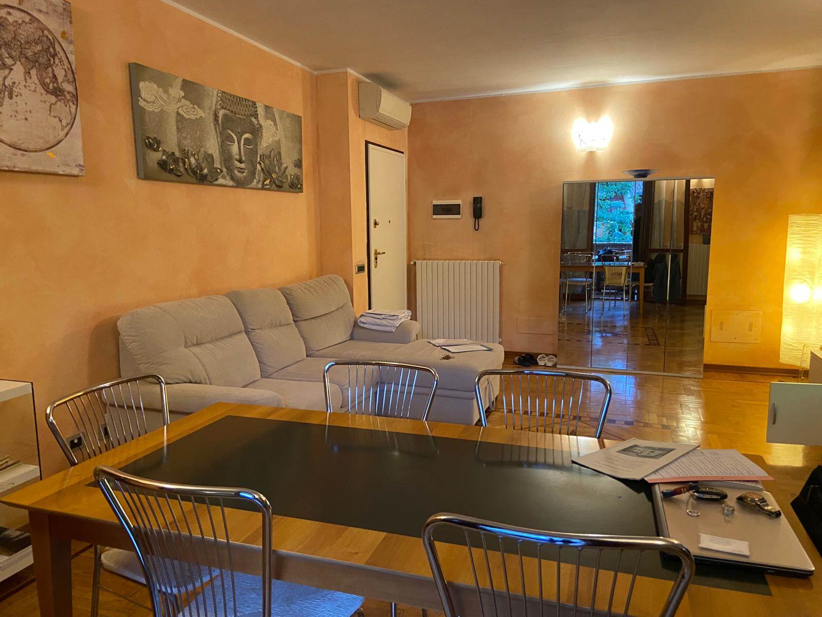 L’appartamento si distingue per le finiture interne di alta qualità, con pavimenti in legno, riscaldamento autonomo e impianto di raffrescamento con split. La proprietà comprende inoltre un garage con cantina e un posto auto riservato, e posti auto nel cortile condominiale. Ampi parcheggi esterni La posizione, in una strada interna e non di passaggio, garantisce quiete e riservatezza, pur rimanendo comoda ai principali servizi.