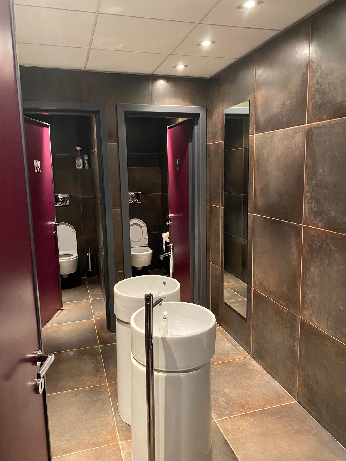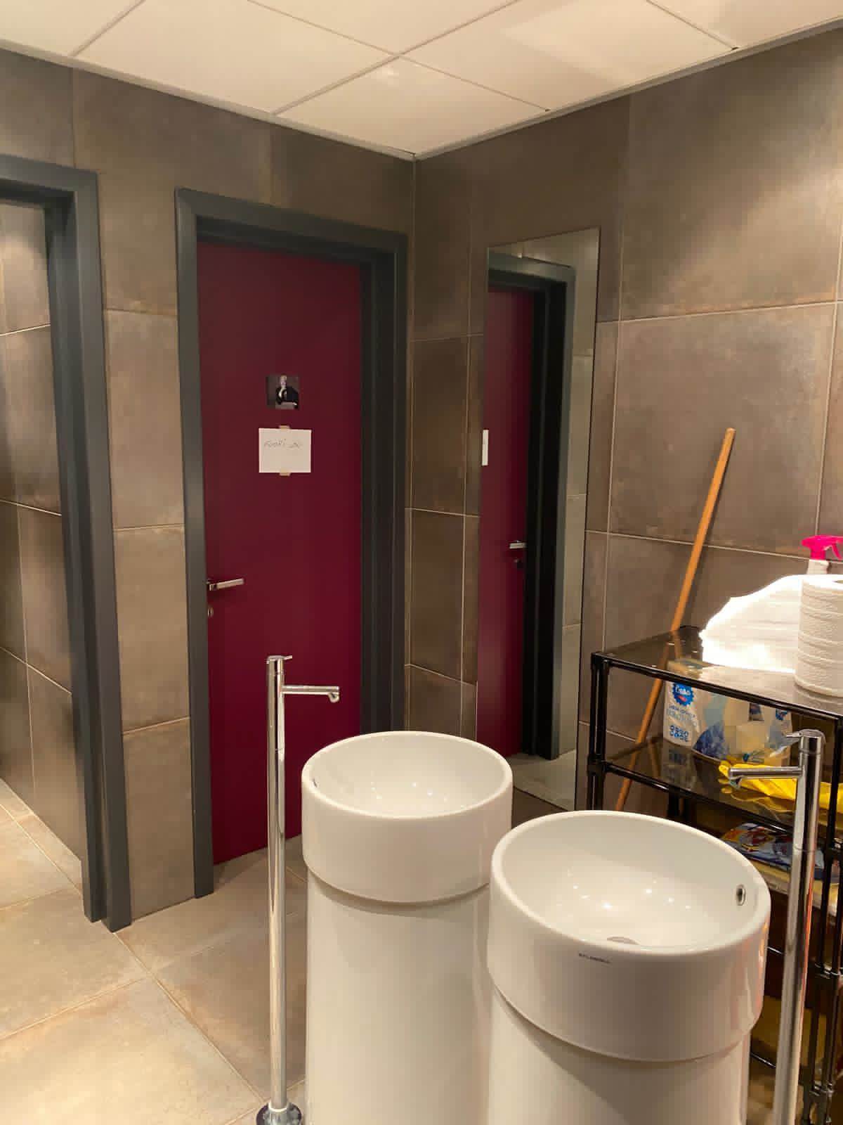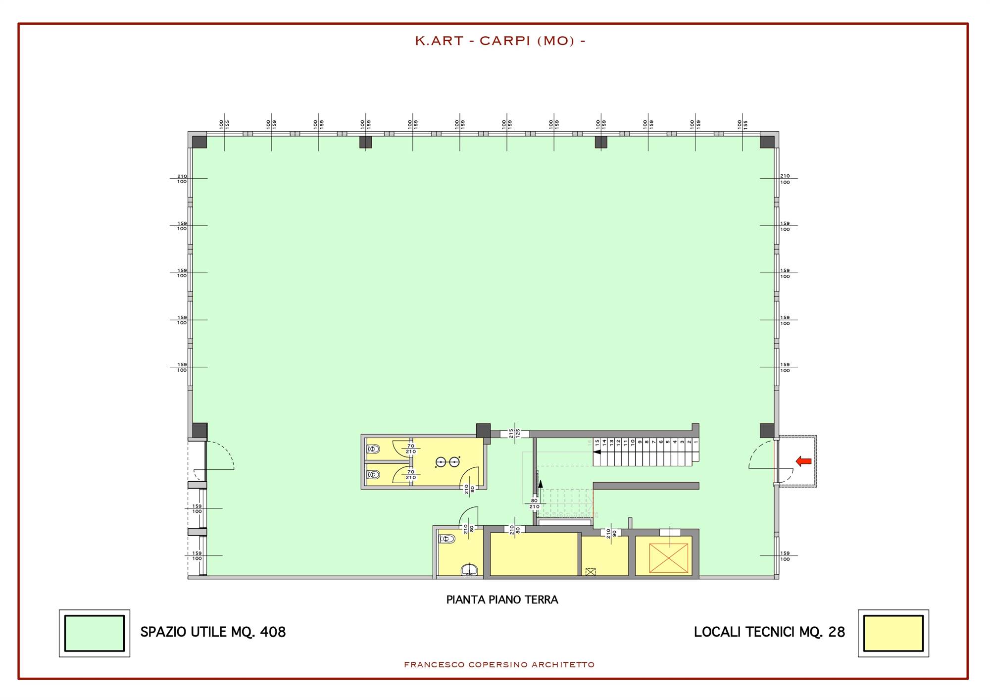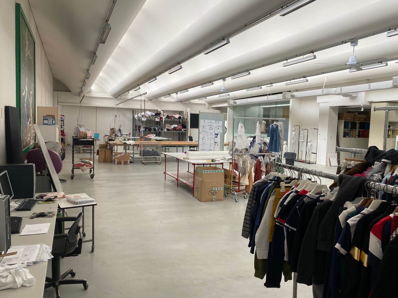 Piano terra: reception, locali adibiti a laboratori e uffici, magazzino, servizi igienici (incluso bagno per disabili) e ampio vano scale con ascensore.