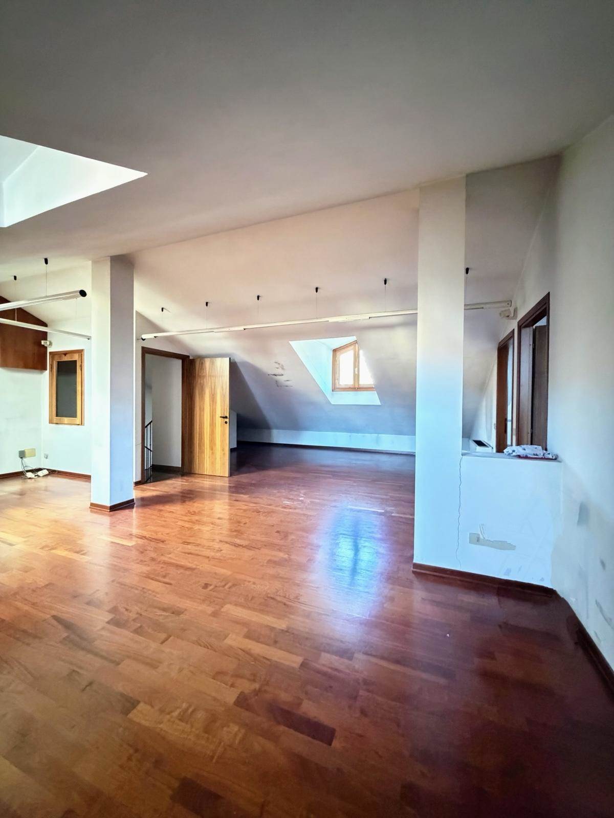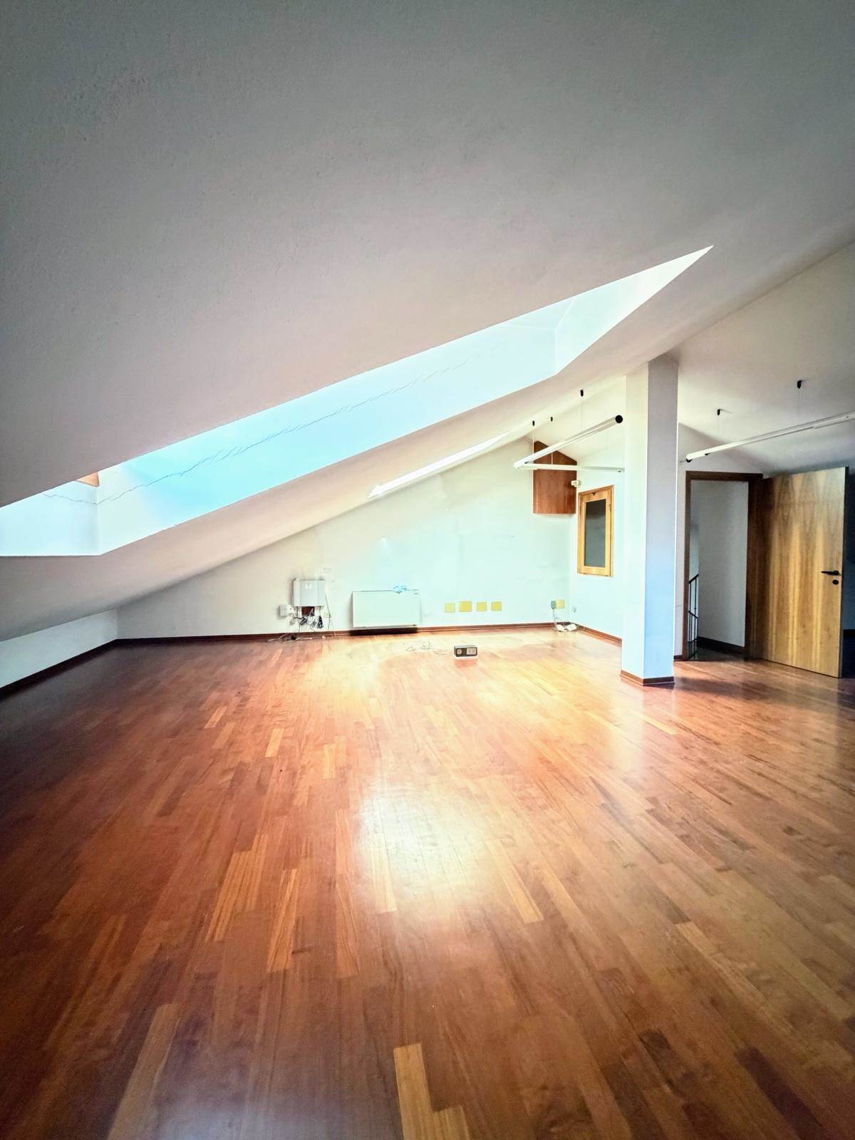 Secondo Piano - Sottotetto (140 mq circa): Piano di ampie dimensioni attualmente in fase di sanatoria per l’ottenimento dell’abitabilità. Si presenta come un grande open space già predisposto per un'area cucina e dotato di un servizio (completo di lavandino). Un volume interessante che può trasformarsi in una splendida mansarda abitabile.
