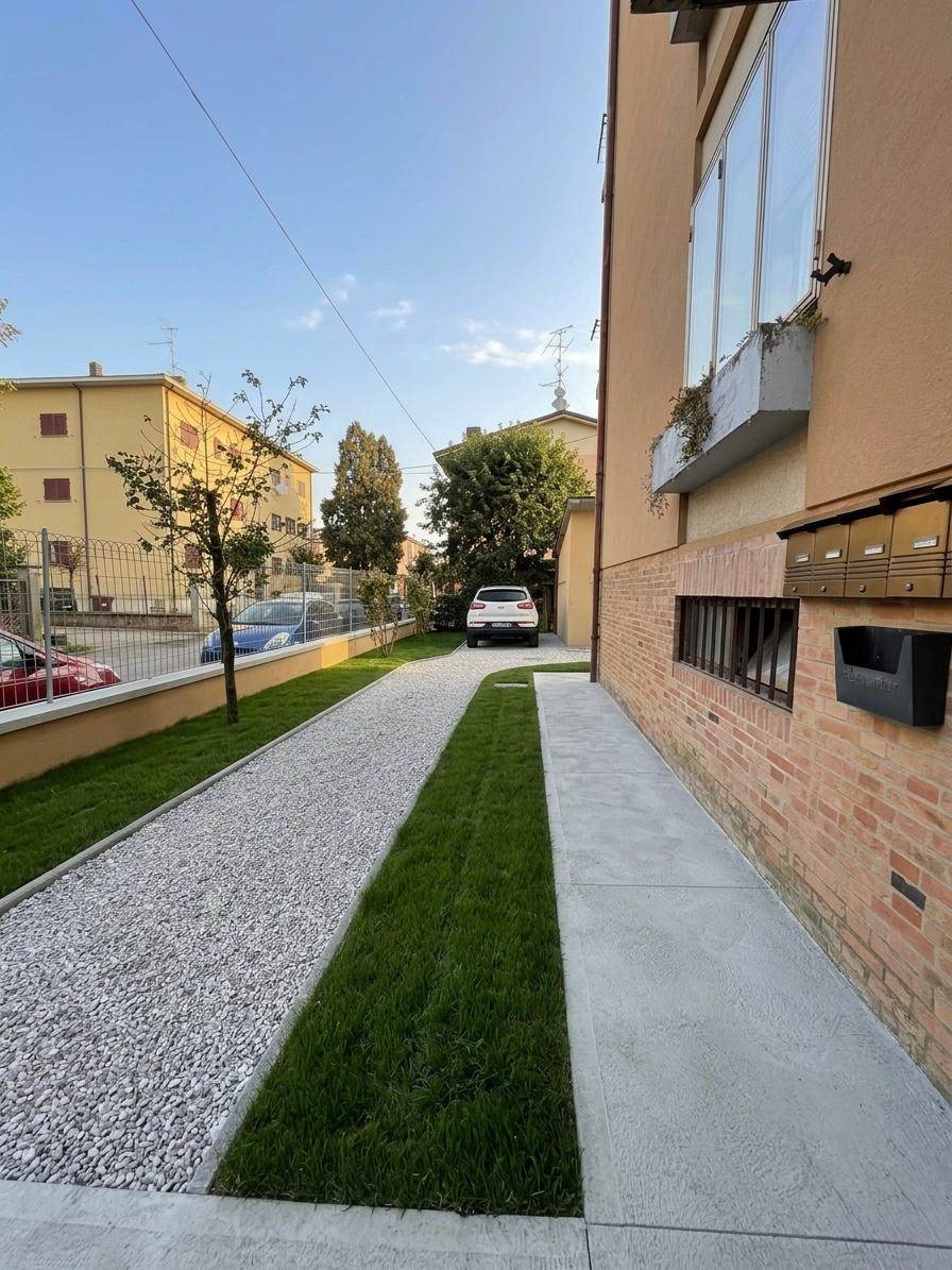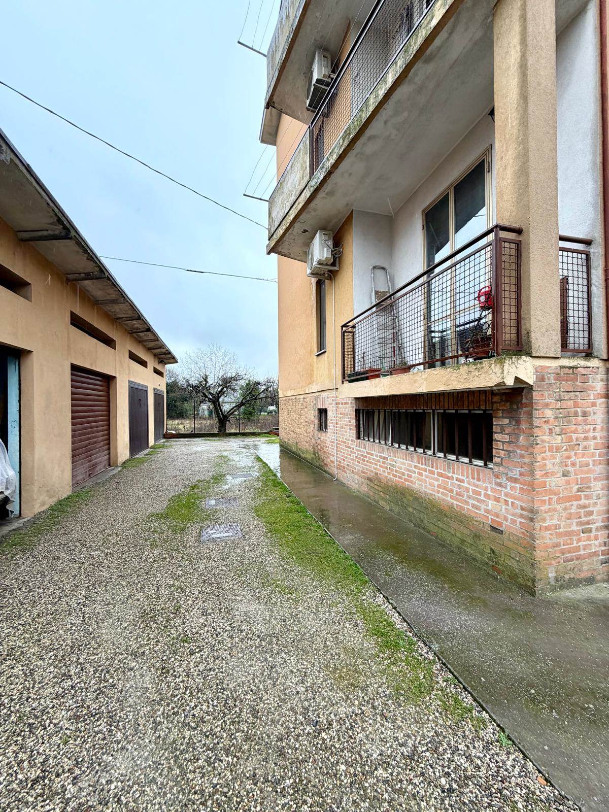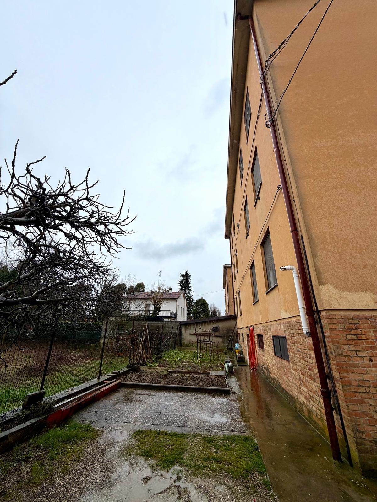 L'immobile è composto da ingresso su corridoio, soggiorno, cucinotto con balcone, due camere da letto matrimoniali, bagno finestrato con affaccio sul balcone comunicante e ripostiglio. Le pertinenze includono una cantina ampia, un ripostiglio per biciclette comune, un posto auto e un piccolo orto privato. Il garage è in comproprietà.